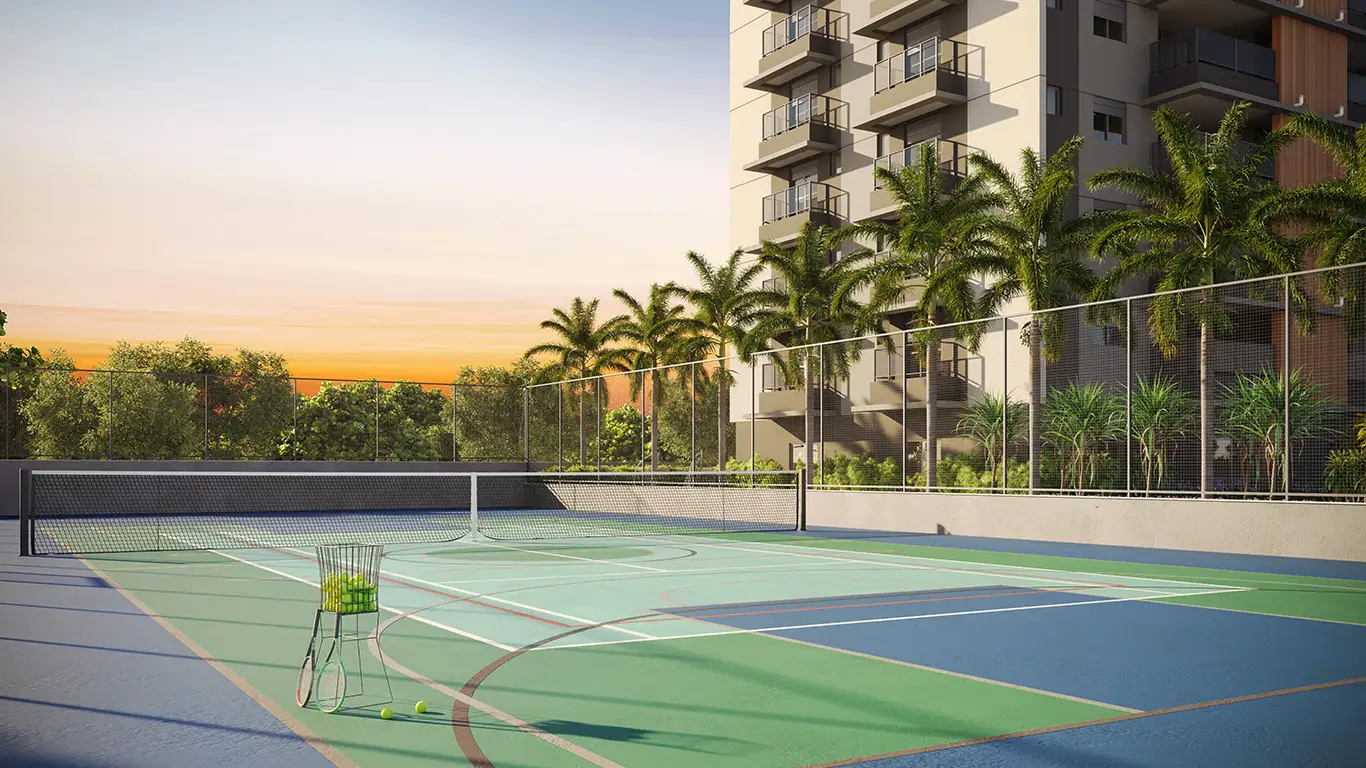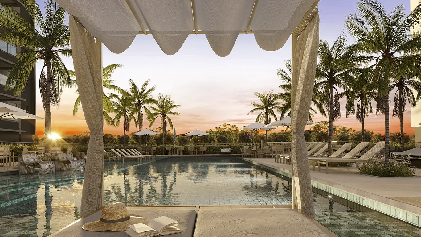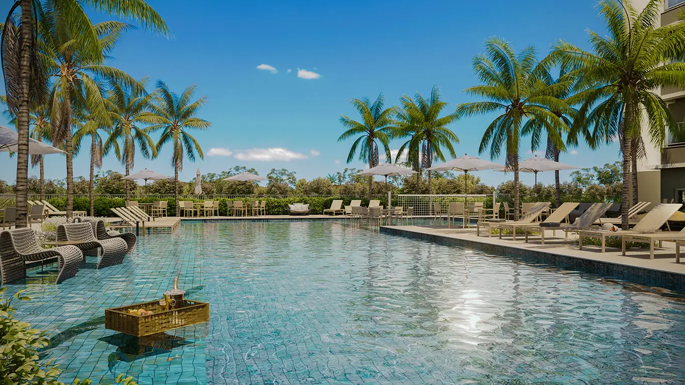 Desfrute de uma infraestrutura completa com piscinas (geral, bangalô, biribol, espelho d’água), academia moderna, spa, beauty place, salão de festas, gourmet, sports bar, game room, coworking, pet place, mini mercado, quadra esportiva, beach tennis e muito mais para todas as idades.