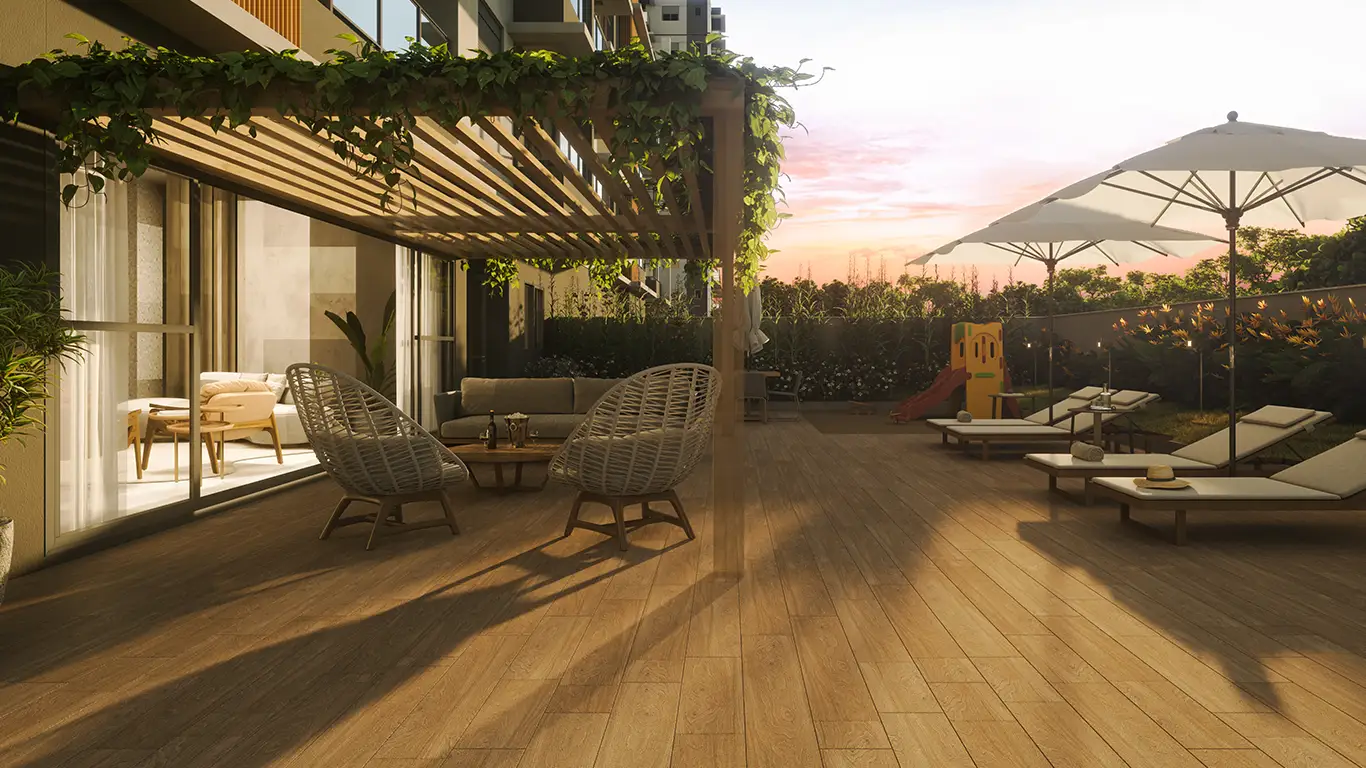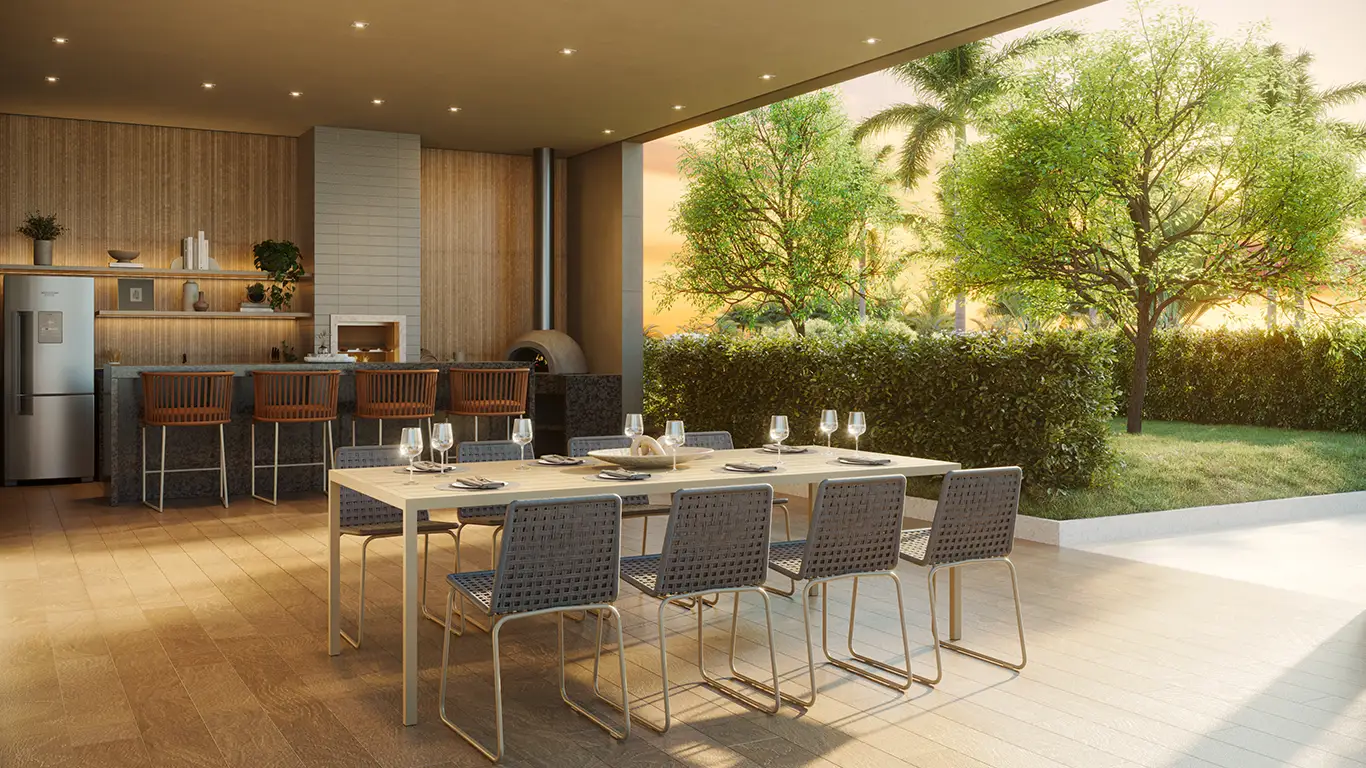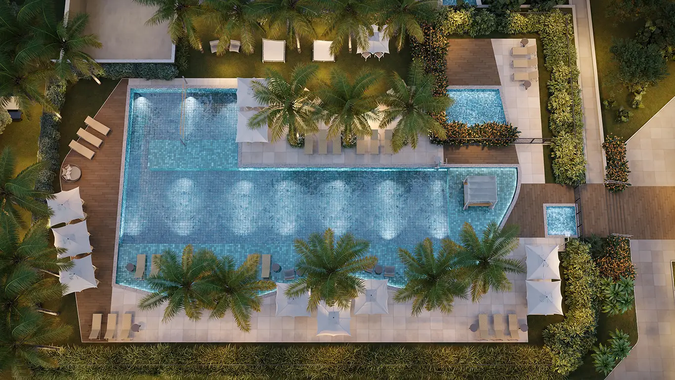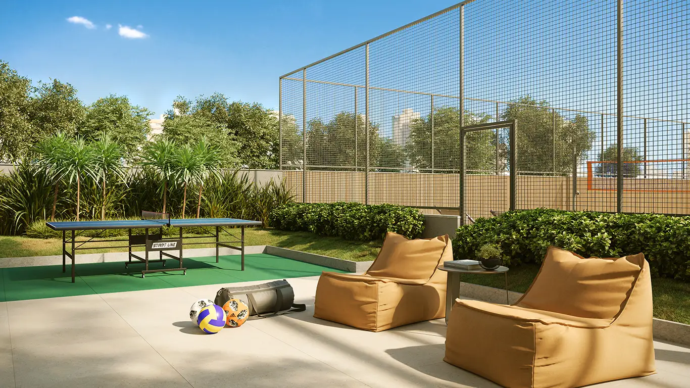 Desfrute de uma infraestrutura completa com piscinas (geral, bangalô, biribol, espelho d’água), academia moderna, spa, beauty place, salão de festas, gourmet, sports bar, game room, coworking, pet place, mini mercado, quadra esportiva, beach tennis e muito mais para todas as idades.